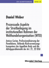 Nach über 10-jähriger Praxiser fahrung widmet sich diese Untersuchung mehreren prozessualen Aspekten unter der Fragestellung, ob der neue Streitbeilegungsmechanismus weiterer Optimierungen bedarf. Konkret wird die Zulässigkeit sog. amicus curiae briefs, die Frage einer möglichen Professionalisierung der Panelebene, die im gegenwärtigen Prozessrecht fehlende Möglichkeit für den Appellate Body, Fälle an die untere Panelebene zurückzuver weisen („remand authority“) und schließlich die Problematik der zeitlichen Abfolge zwischen Compliance-Panels und Schiedsverfahren im Rahmen der Durchsetzung von Entscheidungen des Streitbeilegungsgremiums (Art. 21, 22 DSU) beleuchtet.